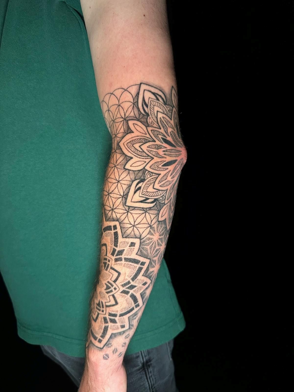 Jedes Design wird individuell für dich entworfen, ohne Vorlagen und ohne Massenmotive. Dein Tattoo soll zu dir passen und deine natürliche Körperform betonen. Ob Unterarm, Oberarm, Rücken, Schulter, Bein oder Finger, Ornamente lassen sich flexibel an nahezu jede Körperstelle anpassen.